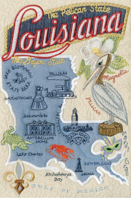 "This item looks even better than shown. The colors and shading created by the stitches are exquisite. I didn't realize that the gray parts (state and "Home") were also embroidered. This is going to be a gift that my out-of-state visitor will cherish. Thank you!"