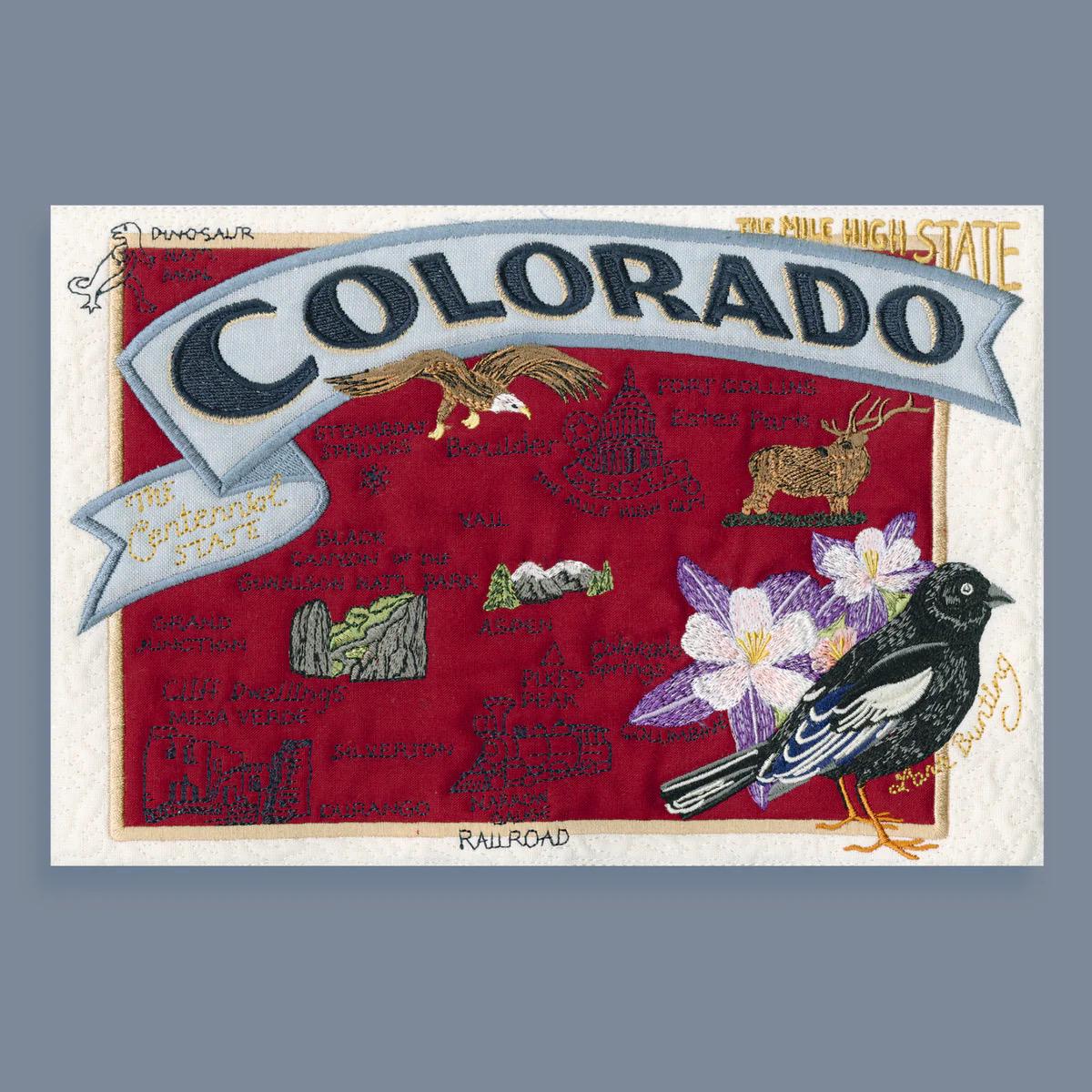 "This item looks even better than shown. The colors and shading created by the stitches are exquisite. I didn't realize that the gray parts (state and "Home") were also embroidered. This is going to be a gift that my out-of-state visitor will cherish. Thank you!"