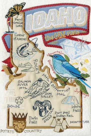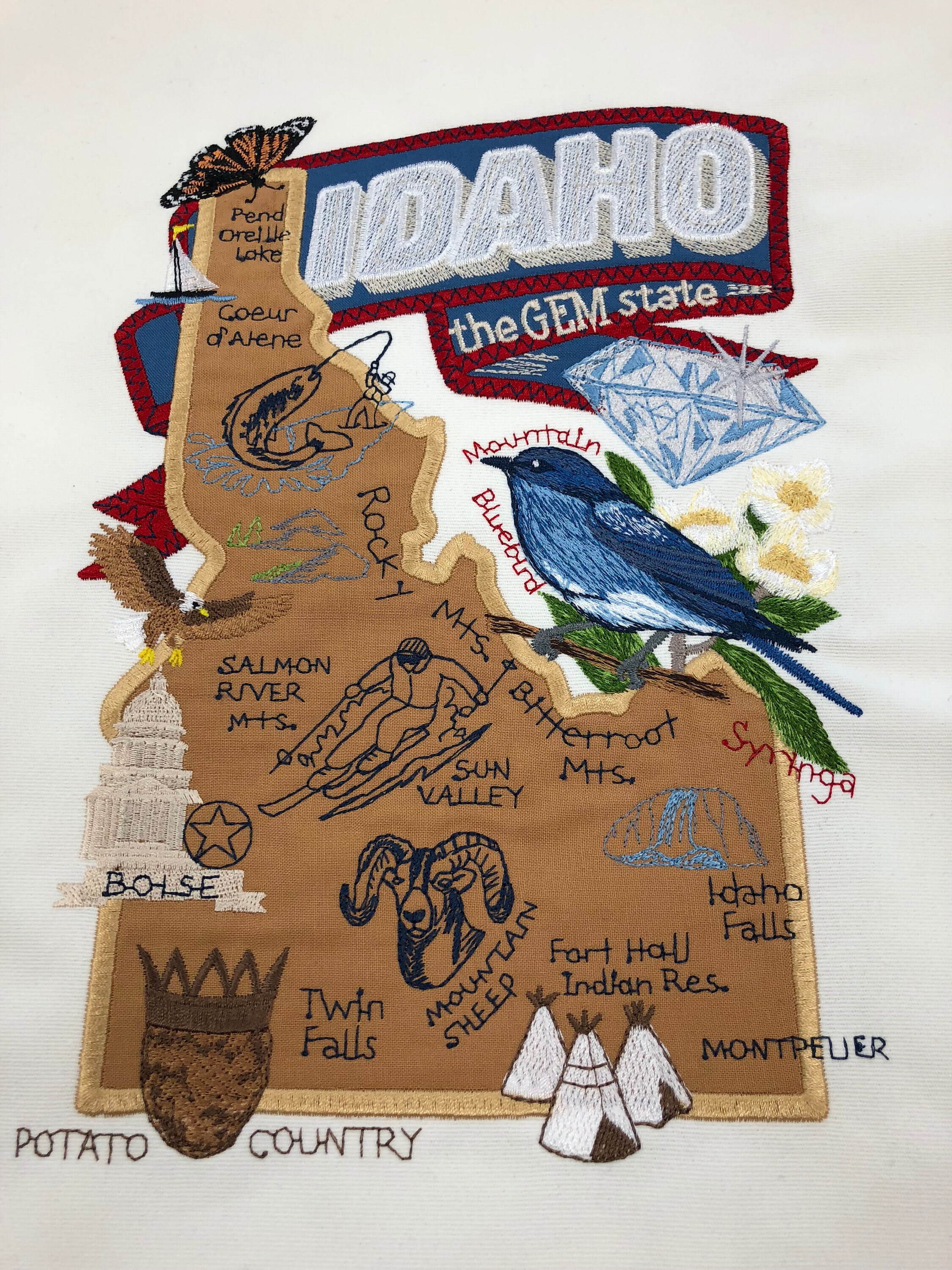 "This item looks even better than shown. The colors and shading created by the stitches are exquisite. I didn't realize that the gray parts (state and "Home") were also embroidered. This is going to be a gift that my out-of-state visitor will cherish. Thank you!"