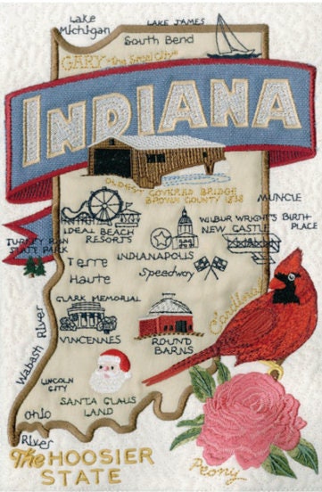 "This item looks even better than shown. The colors and shading created by the stitches are exquisite. I didn't realize that the gray parts (state and "Home") were also embroidered. This is going to be a gift that my out-of-state visitor will cherish. Thank you!"