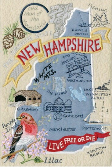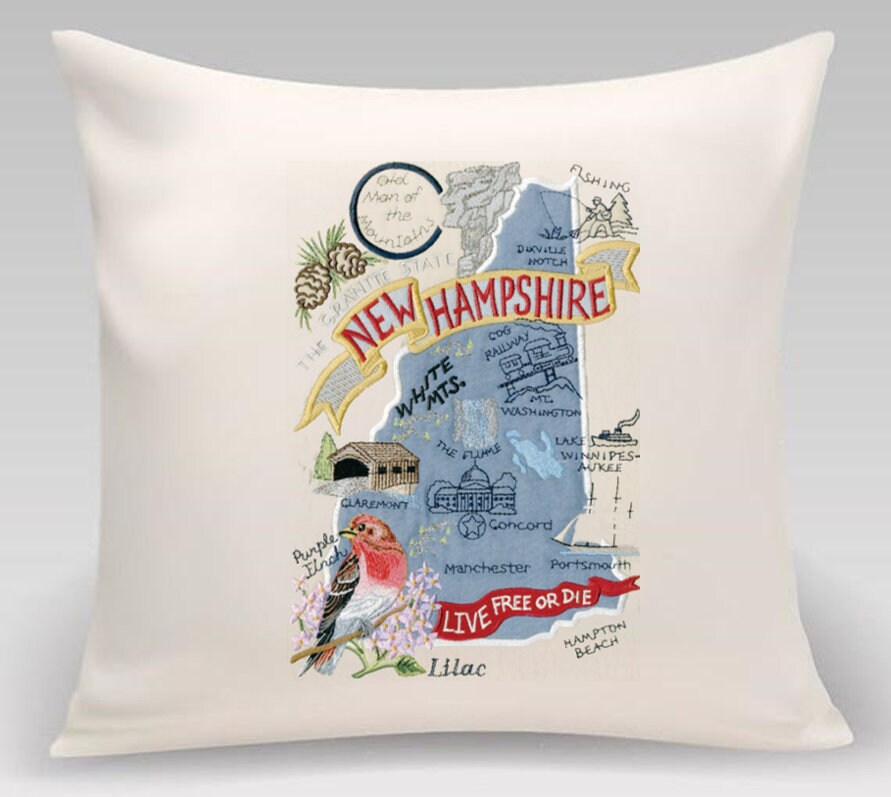 18 Inch embroidered pillow - New Hampshire